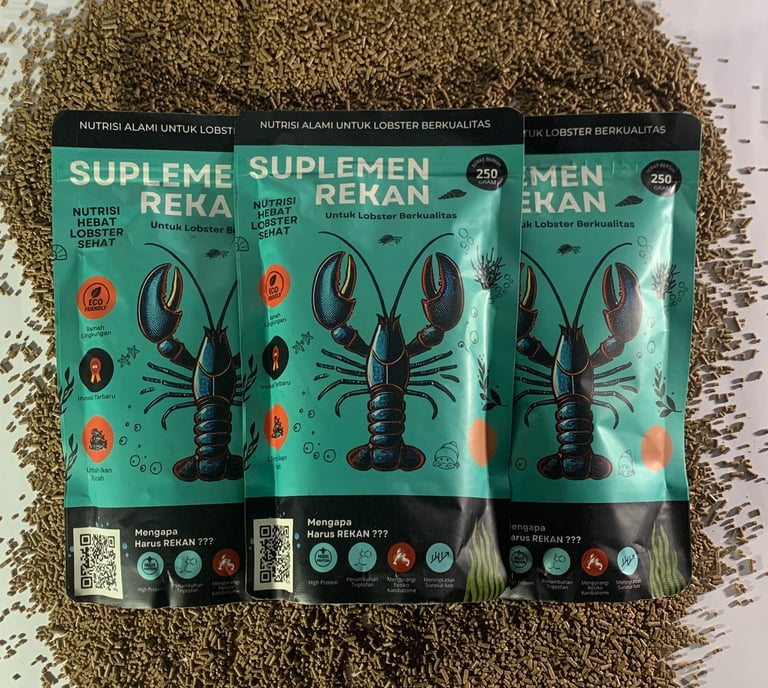 Suplemen REKAN hadir sebagai solusi berbahan alami yang diformulasi khusus untuk meningkatkan pertumbuhan dan kualitas lobster.